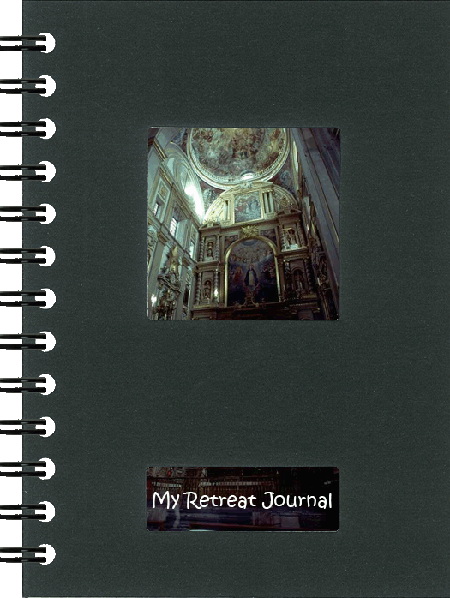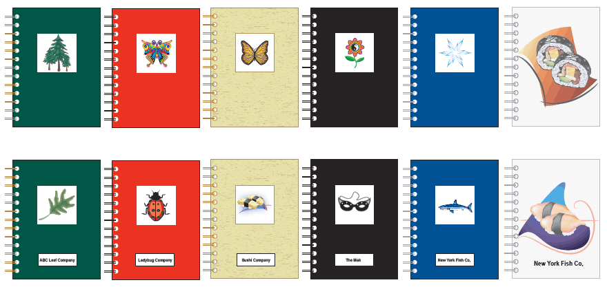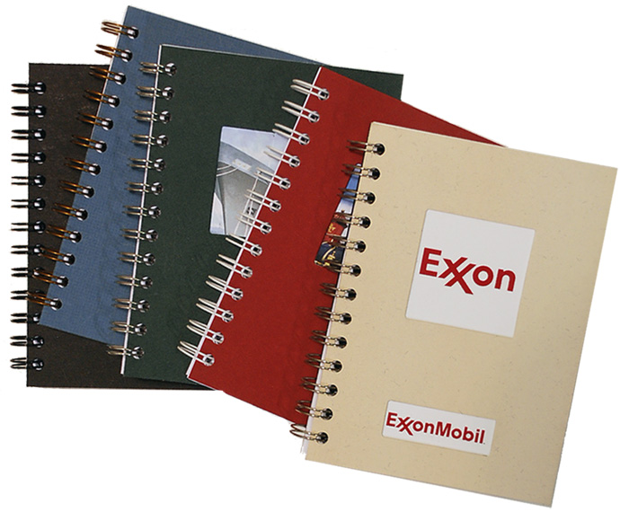 Our quick ship journals come with your choice of cover material color, paper type (ruled or blank), wire color and a single or double die cut window. Send in your artwork to (art @ usapad.com) be printed on a digital top sheet, that will be seen through the die cut window(s).