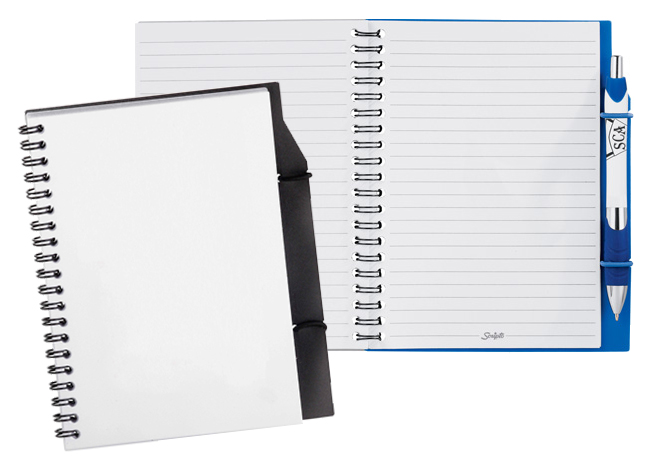 Double shock cord pen holder. Includes 70 pages of lined paper.
