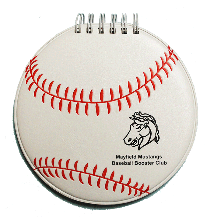Textured sports vinyl covers, heat sealed front and back, imitate the real thing. These sports jotters have 60 sheets of narrow-ruled paper, and are double-wire spiral bound. They can be ordered blank or with your team's name and logo imprinted. Perfect for school teams and booster clubs! While supplies last, only.